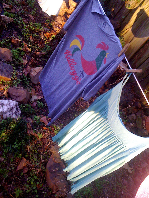 After we get home, if I have any energy at all I go hang out and hang or take down some laundry off our laundry line. I still use my dryer because we just make SO much laundry that I would never get it done just drying it on the line, but I try to hang one in three loads outside. Plus it is like therapy. No one bothers me at the laundry line because no one wants to help!