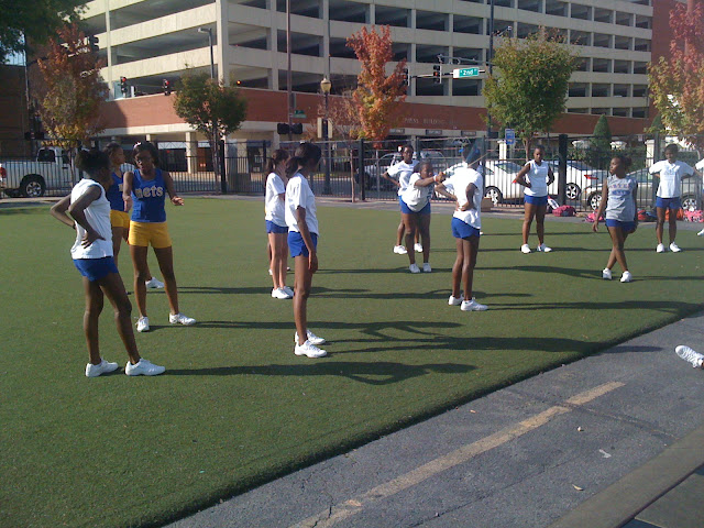 These are our cheerleaders practicing on the turf on our playground. They are usually outside during the dismissal time and it is fun to watch them do all their kicks and jumps. Also it is funny to be on this side of life. Somehow the cheerleaders are not as nearly as intimidating as they were when I was thirteen.