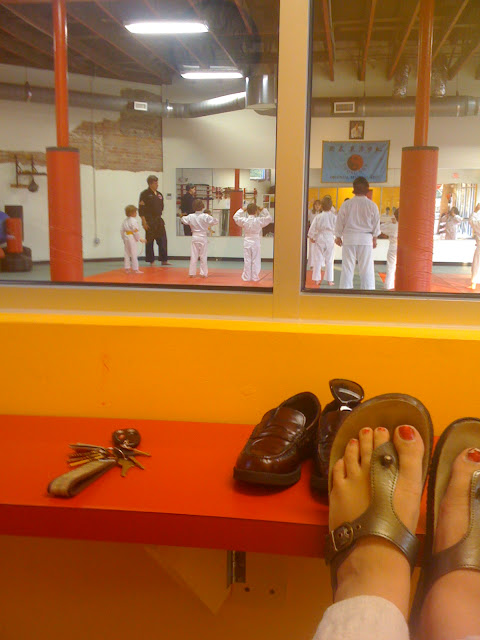 Since we go straight from music to martial arts, we have all learned to bring reading material, Wylie especially. I feel like I can’t get a candid shot of him these days without his nose being in a book. Not that I am complaining!